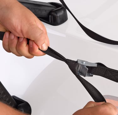 Experience Unmatched Security with our 6-Point Attachment System. Secure your bikes with Six Attachment Points and Strong Ropes with Metal Cam Buckle Straps. Just Stretch, Lock, and Tie